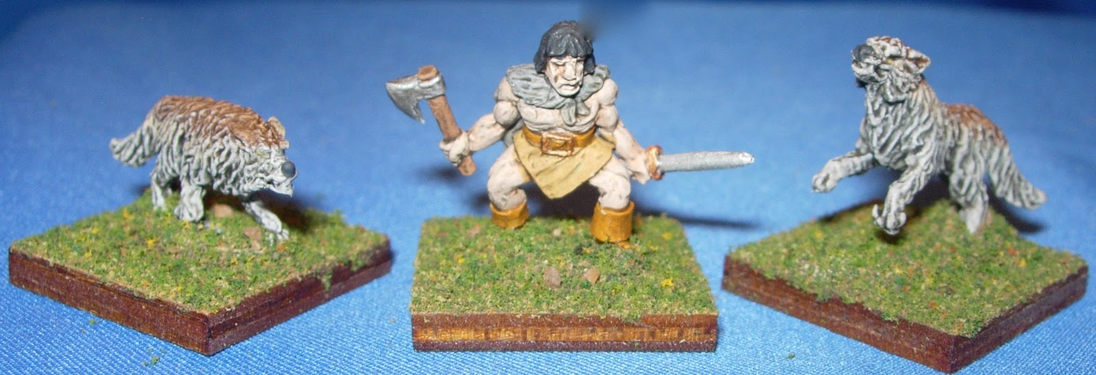 Finally, we have the new Archer Collection piece for 2011--Young Conan and 2 wolves. These were sculpted by Rodrick Campbell and the wolves will also be available in a new MISC pack we will be doing. I tried out a goblin rider from above on the wolves and I think they will work well together as well.